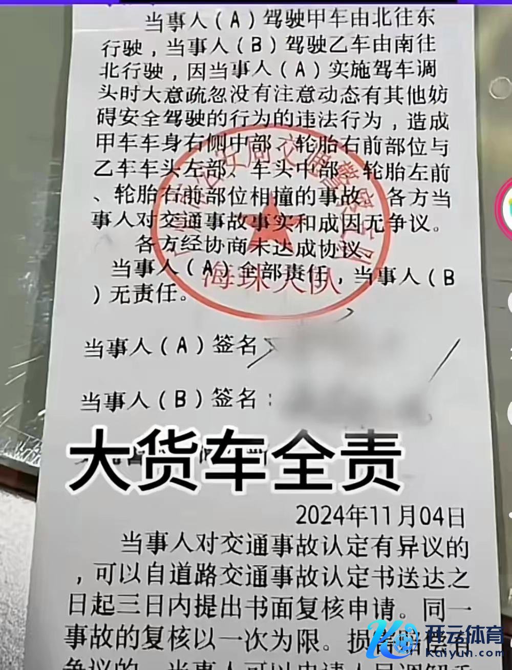 其后事故认定恶果出来了,是大货车全责,但别传后续对方可能会讲演。