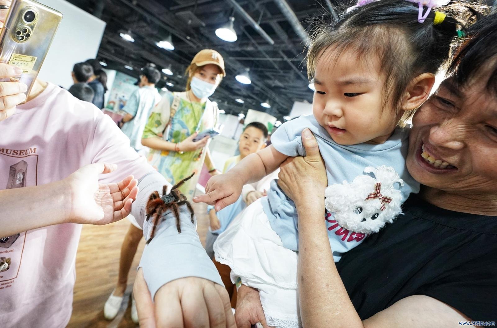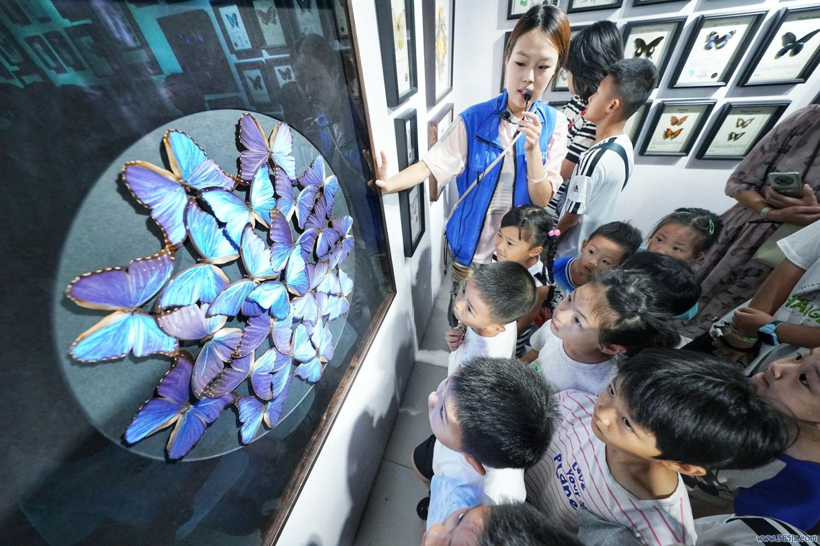 “姆妈你看!异型紫斑蝶在喝蜂蜜水!”高昂的童声在北京王府井大街新中国儿童用品商店五层的虫鸣探秘活体当然博物馆内漂泊。蝴蝶如绸缎般的翅膀停在女孩指尖吸食蜜露。这座暑期新晋网红展馆,让百余种曾困于书册插图的生物开yun体育网,成为孩子们掌心可触的“当然导师”。