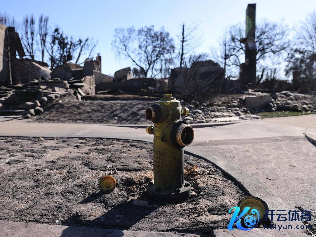 这是1月13日在好意思国洛杉矶地区的“帕利塞兹”山失火区拍摄的一处被火烧过的消防栓。新华社发(邱晨摄)