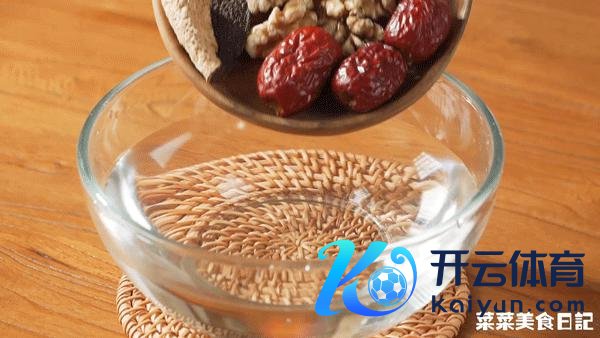 1. 将去核红枣、陈皮、核桃、黑豆用净水冲洗一下备用
