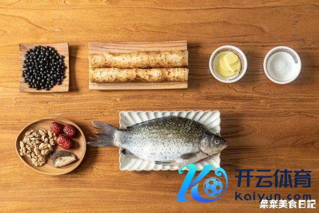 鲫鱼 1 条 黑豆 50g 淮山 150g 核桃肉 30g 去核红枣 3 颗