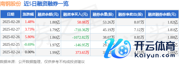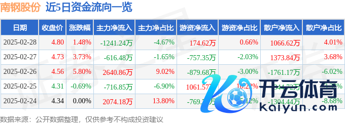 本站音问开云体育(中国)官方网站,截止2025年2月28日收盘,南钢股份(600282)报收于4.8元,飞腾1.48%,换手率0.91%,成交量56.11万手,成交额2.66亿元。